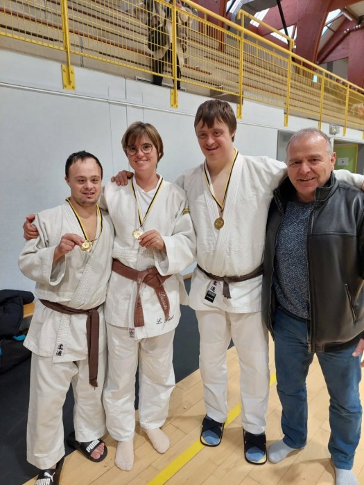 | 25/03/2022 : retour sur les tatamis pour nos judokas Thématique : Evénements Les championnats régionaux de para judo adapté ont eu lieu dans l'Ain Dimanche 20 mars dernier. Après deux années sans pratique et avec très peu d'entraînements, les judokas étaient très motivés et ravis de se retrouver sur les tatamis. Bravo à nos champions Laurette, Adrien et Clément ! | |